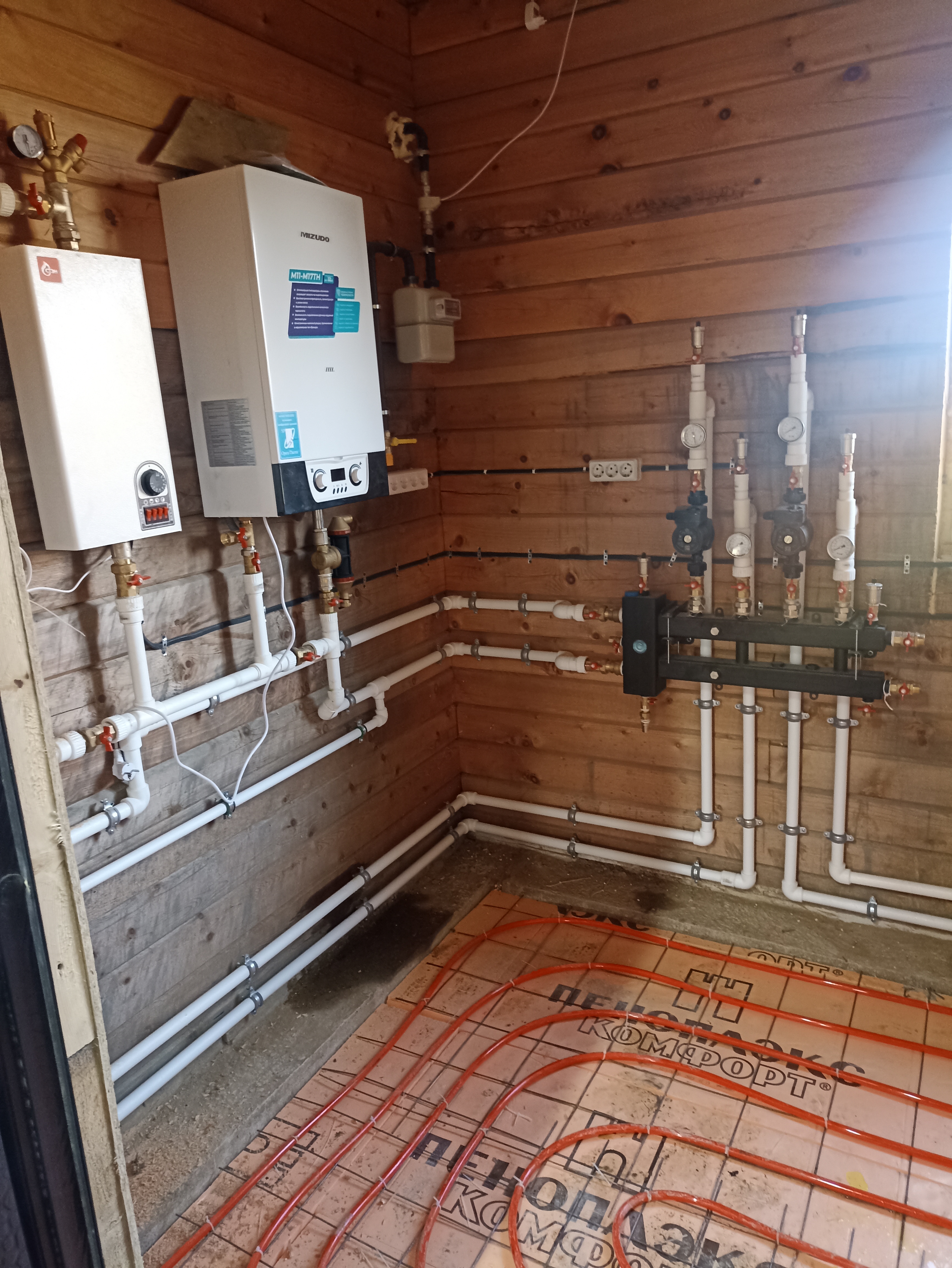 Фото наших работ: котлы, обвязка, наружные и внутренние сети, пуск газа.
